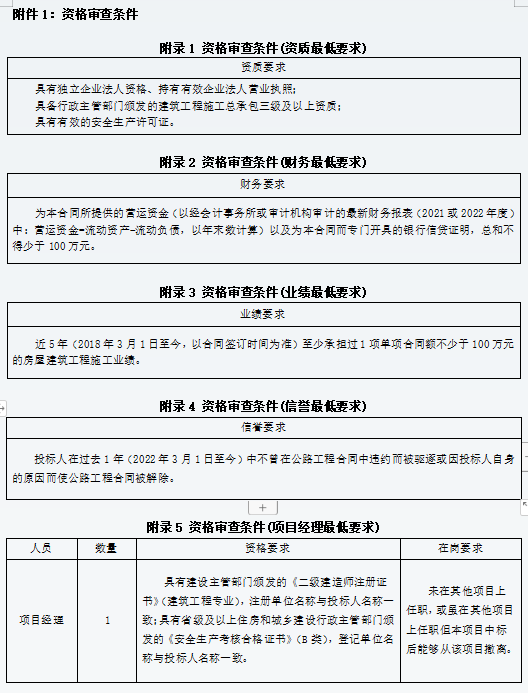 3.1本次招標(biāo)要求投標(biāo)人具有獨立企業(yè)法人資格,滿足本公告附件1要求的資格審查條件,并在人員、設(shè)備、資金等方面具備相應(yīng)的能力。